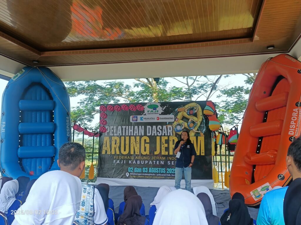 SINDANGHEULA – Federasi Arung Jeram Indonesia (FAJI) Kabupaten Serang menggelar kegiatan Pelatihan Dasar Arung Jeram pada Sabtu dan Minggu, 2–3 Agustus 2025. Kegiatan ini dipusatkan di Bendungan Sindangheula, tepatnya di aliran Sungai Cibanten segmen Sindangheula – Cigintung Sayar.