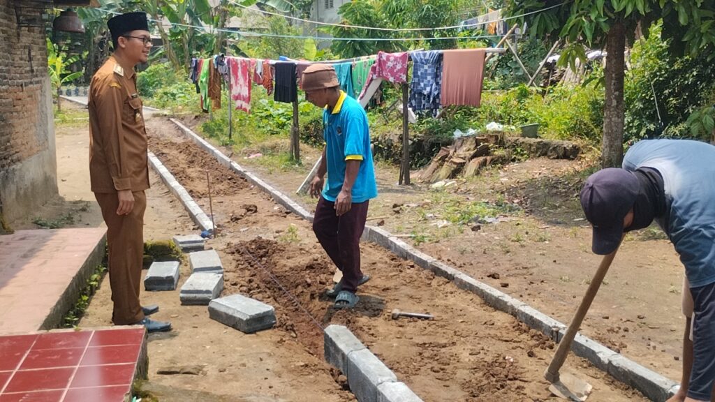 SINDANGHEULA — Kepala Desa Sindangheula, Suheli, S.Kom.I.,MM melakukan kegiatan monitoring pelaksanaan pembangunan peningkatan kualitas jalan lingkungan di dua titik wilayah, yakni Kampung Benoa Kidul RT 007/RW 002 dan Kampung Ciwatu RT 009/RW 003, pada Senin (6/10/2025).