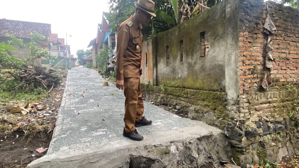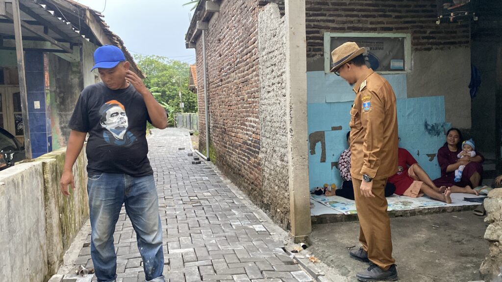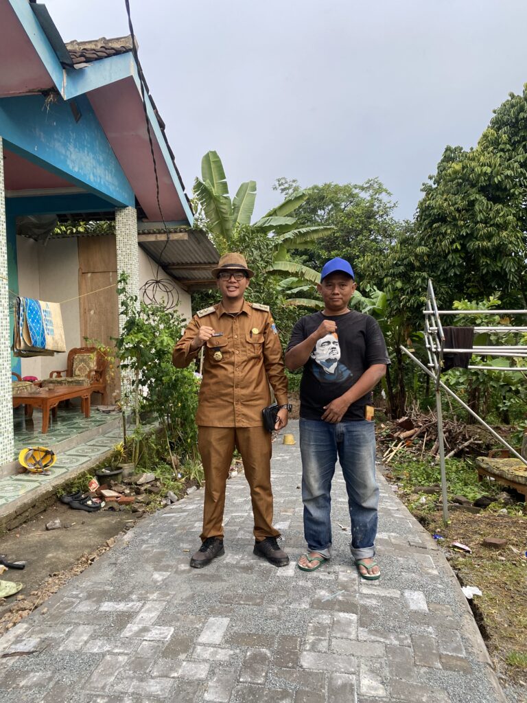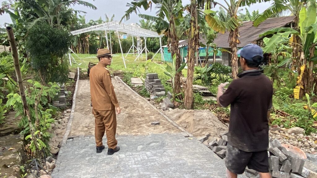 SINDANGHEULA – Kepala Desa Sindangheula, Suheli, S.Kom.I., M.M., melakukan monitoring langsung terhadap progres pembangunan infrastruktur jalan paving block di dua lokasi, yakni Kampung Benua Lor dan Kampung Pesagi Kembang, pada Senin (01/12/2025). Pembangunan jalan tersebut menggunakan anggaran Dana Desa Tahun 2025.