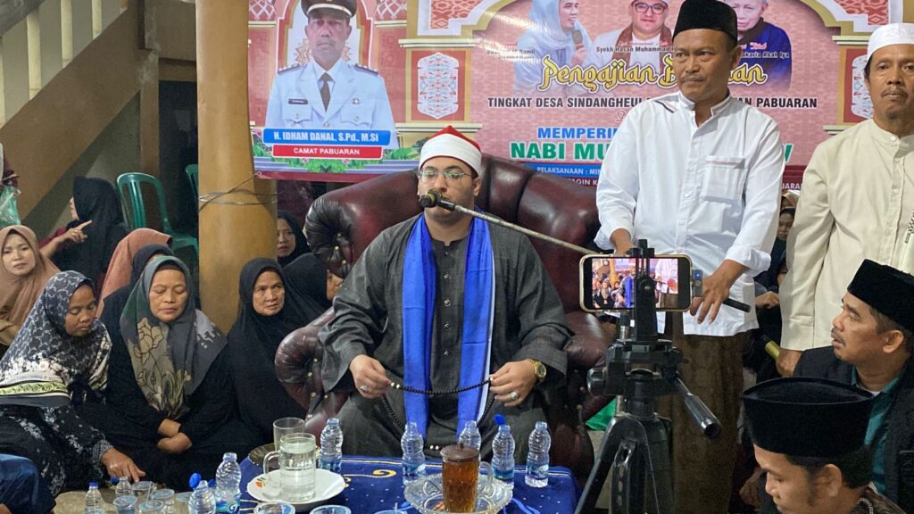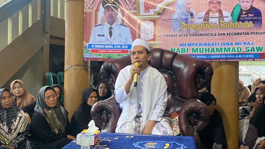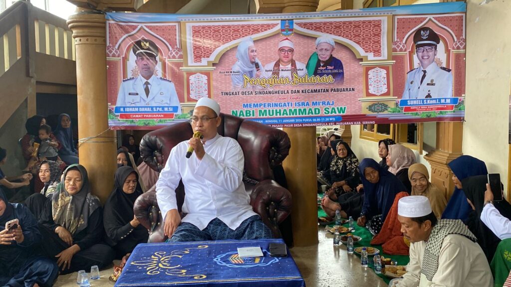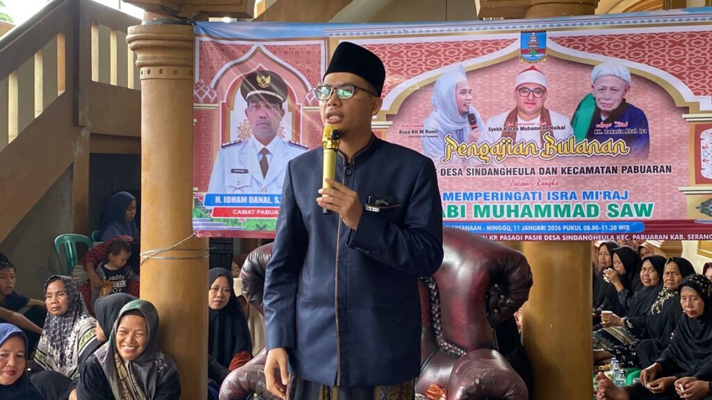SINDANGHEULA – Kegiatan pengajian bulanan tingkat Kecamatan Pabuaran yang dirangkaikan dengan pengajian bulanan tingkat Desa Sindangheula, peringatan Hari Desa 2026, serta peringatan Isra Mi’raj Nabi Muhammad SAW digelar khidmat di Masjid Al-Maghrosatul Muttaqin, Kampung Pesagi Pasir, Desa Sindangheula, Kecamatan Pabuaran, Kabupaten Serang, Minggu (11/1/2026).