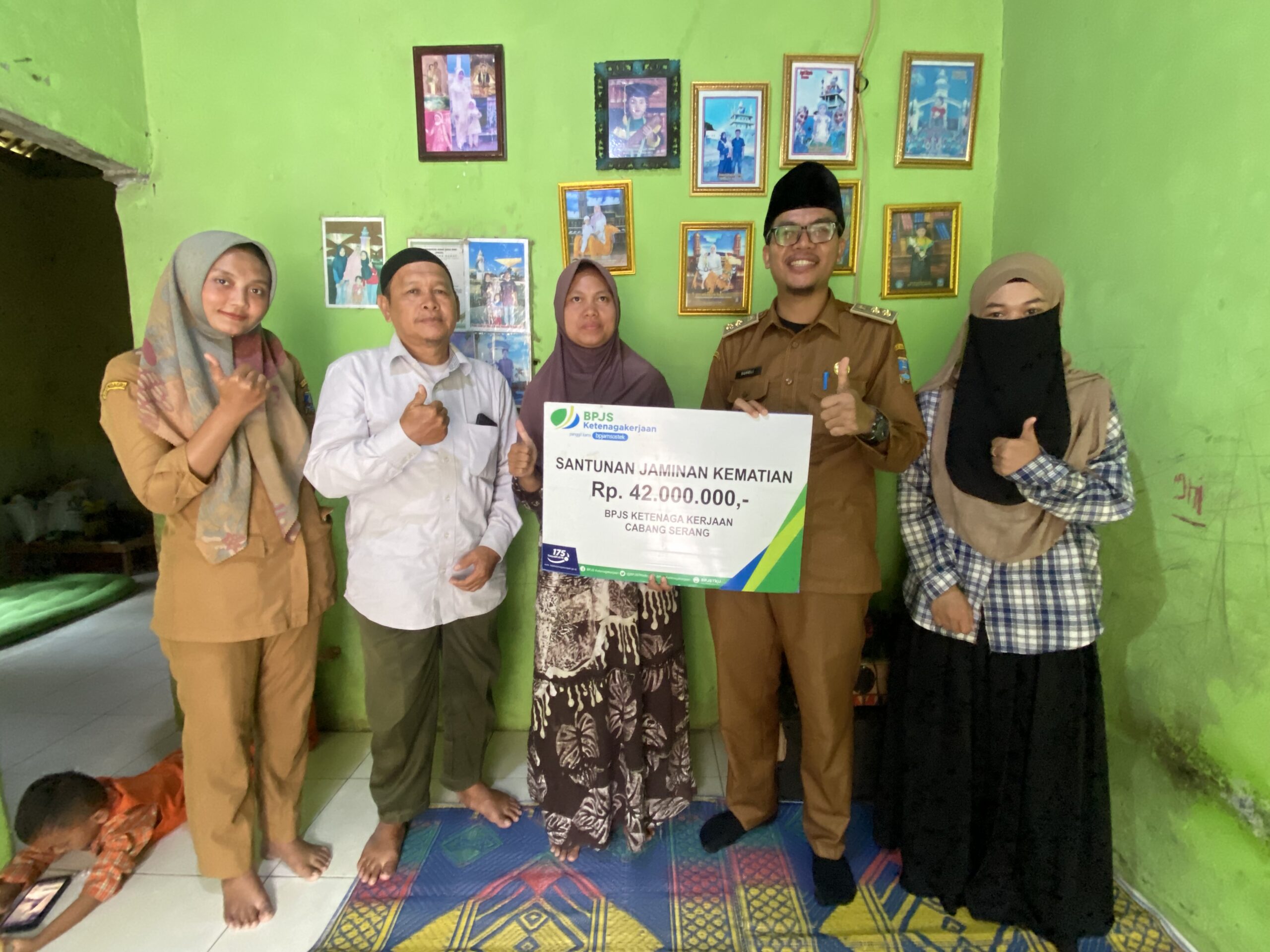 Simbolis Penyaluran Santunan BPJS Ketenagakerjaan di kediaman almarhum Agus Saepudin, warga Kampung Kepuh