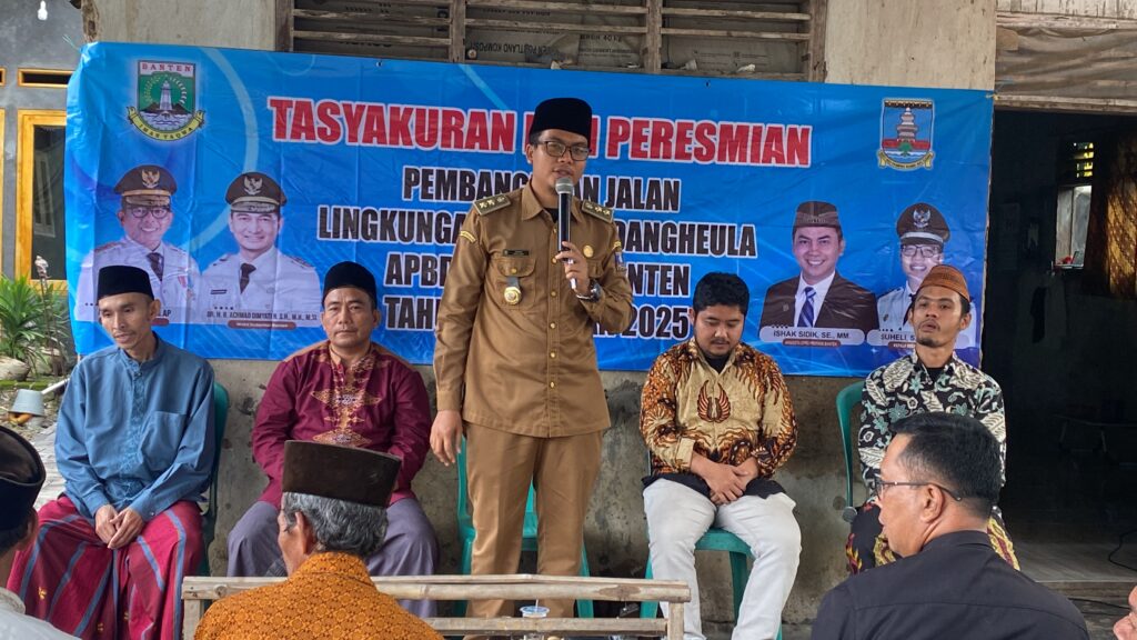 SINDANGHEULA – Warga Kampung Benoa Lor, Desa Sindangheula, Kecamatan Pabuaran, Kabupaten Serang, menggelar kegiatan tasyakuran dan peresmian jalan paving blok