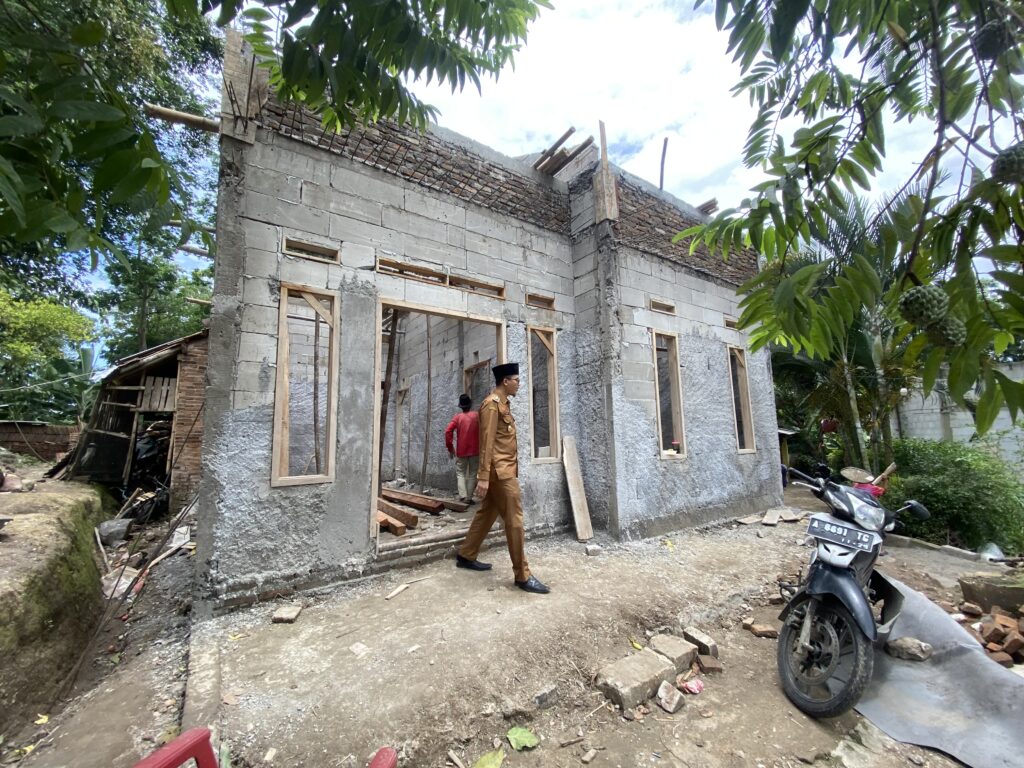 SINDANGHEULA – Kepala Desa Sindangheula, Suheli, S.Kom.I., M.M, meninjau progres pembangunan Rumah Tidak Layak Huni (RTLH) yang dibedah melalui program
